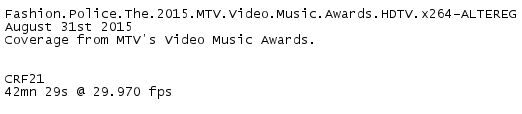 Release Name : Fashion.Police.The.2015.MTV.Video.Music.Awards.HDTV.x264-ALTEREGO