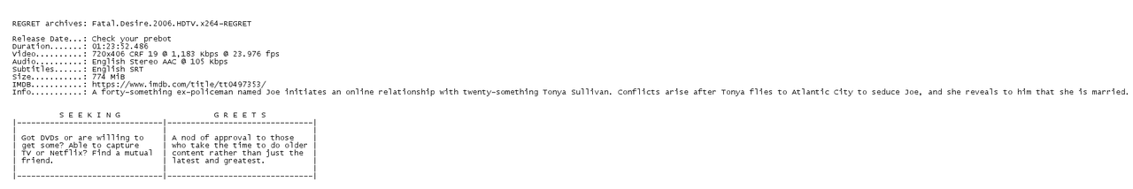 Release Name : Fatal.Desire.2006.HDTV.x264-REGRET