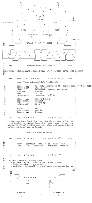 Release Name : Fullmetal.Alchemist.The.Sacred.Star.of.Milos.2011.BDRip.x264-WaLMaRT