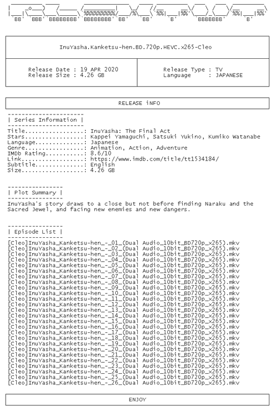 Release Name : InuYasha.Kanketsu-hen.BD.720p.HEVC.x265-Cleo