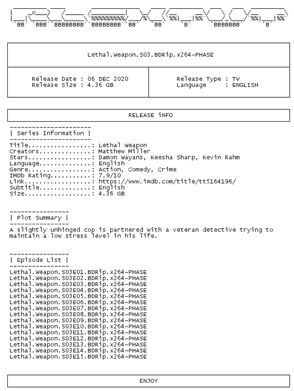 Release Name : Lethal.Weapon.S03.BDRip.x264-PHASE
