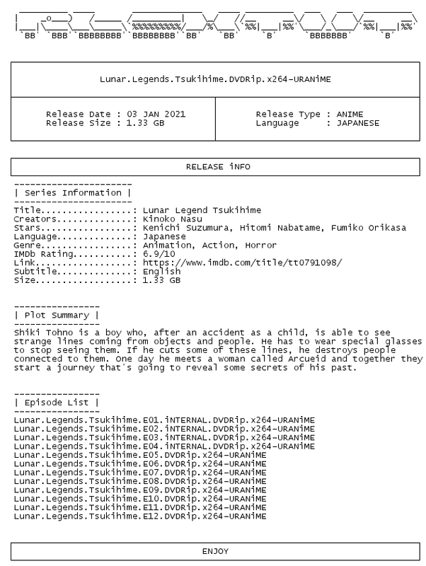 Release Name : Lunar.Legends.Tsukihime.DVDRip.x264-URANiME