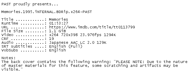 Release Name : Memories.1995.iNTERNAL.BDRip.x264-PAST