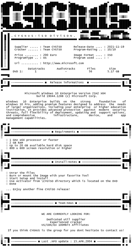 - Microsoft Windows 10 Enterprise Version 22H2 X64-CYGiSO