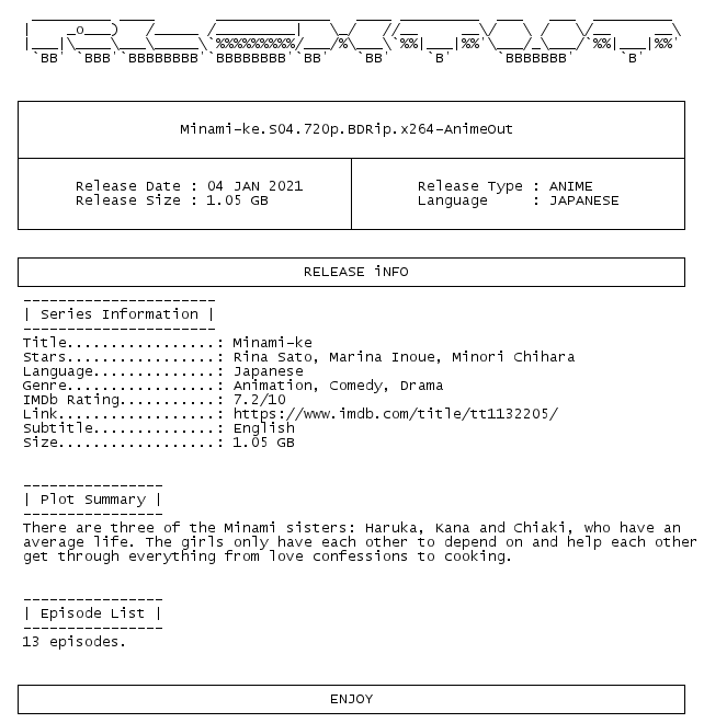 Release Name : Minami-ke.S04.720p.BDRip.x264-AnimeOut