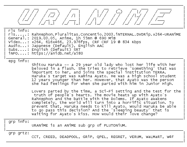 Release Name : RahXephon.Pluralitas.Concentio.2003.iNTERNAL.DVDRip.x264-URANiME
