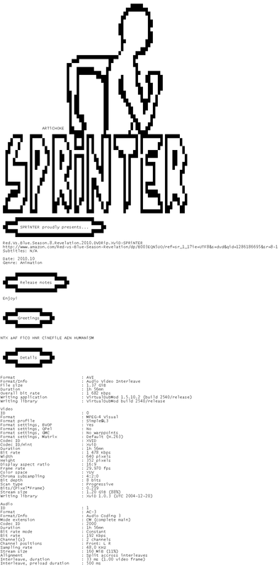Release Name : Red.Vs.Blue.Season.8.Revelation.2010.DVDRip.XviD-SPRiNTER