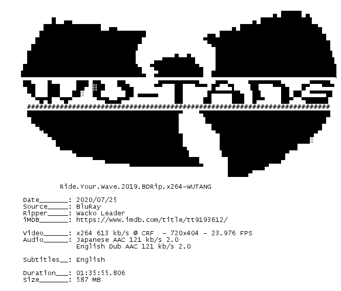 Release Name : Ride.Your.Wave.2019.BDRip.x264-WUTANG