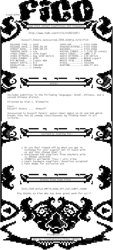 Release Name : Russell.Peters.Outsourced.2006.DVDRip.XviD-FiCO