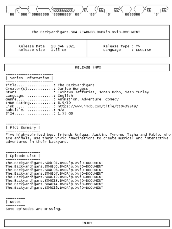 Release Name : The.Backyardigans.S04.READNFO.DVDRip.XviD-DOCUMENT