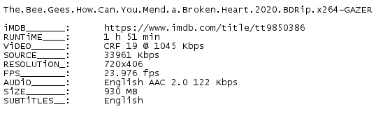 Release Name : The.Bee.Gees.How.Can.You.Mend.a.Broken.Heart.2020.BDRip.x264-GAZER