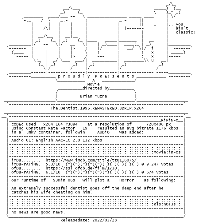 Release Name : The.Dentist.1996.REMASTERED.BDRIP.X264-WATCHABLE