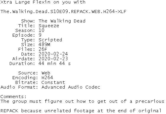 Release Name : The.Walking.Dead.S10E09.REPACK.WEB.H264-XLF