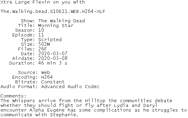 Release Name : The.Walking.Dead.S10E11.WEB.H264-XLF