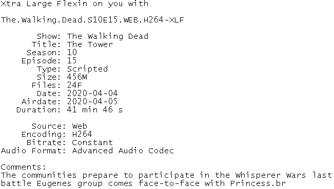 Release Name : The.Walking.Dead.S10E15.WEB.H264-XLF