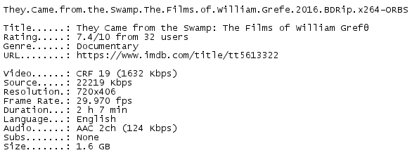 Release Name : They.Came.from.the.Swamp.The.Films.of.William.Grefe.2016.BDRip.x264-ORBS