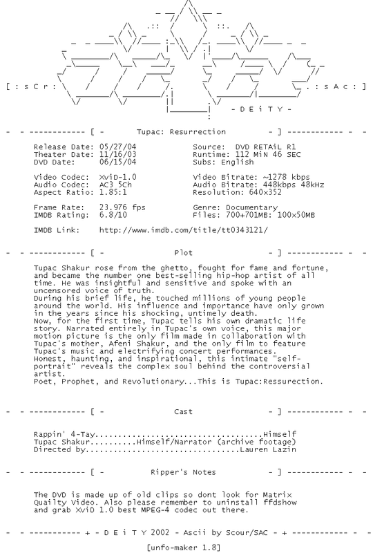 Release Name : Tupac.Resurrection.2003.DVDRiP.XViD-DEiTY