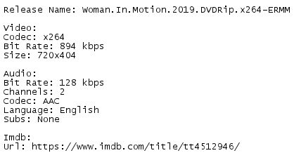 http://www.filefactory.com/file/4e3v7692397m/Woman.In.Motion.2019.DVDRip.x264-ERMM.rar